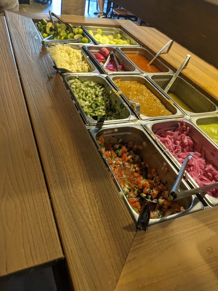 This place just nailed it! The food is delicious. I get the Barbacoa burrito and add whatever they’re willing to put in there! It’s delicious. They have a salsa bar. You can help yourself to as much as you want. NAILED IT!! Pure perfection